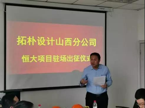 2019年3月26日,拓樸設(shè)計(jì)山西分公司恒大項(xiàng)目駐場(chǎng)出征儀式如期舉行,總公司執(zhí)行總經(jīng)理李玉軍、恒大總工室領(lǐng)導(dǎo)等人一同參加了此次出征儀式,為山西分公司戰(zhàn)友出征加油助威。