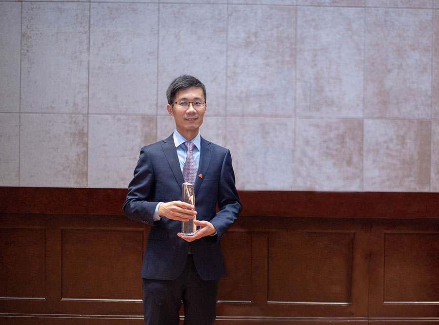 主任工程師范正標(biāo)代表團(tuán)隊(duì)領(lǐng)取獎(jiǎng)杯,