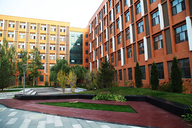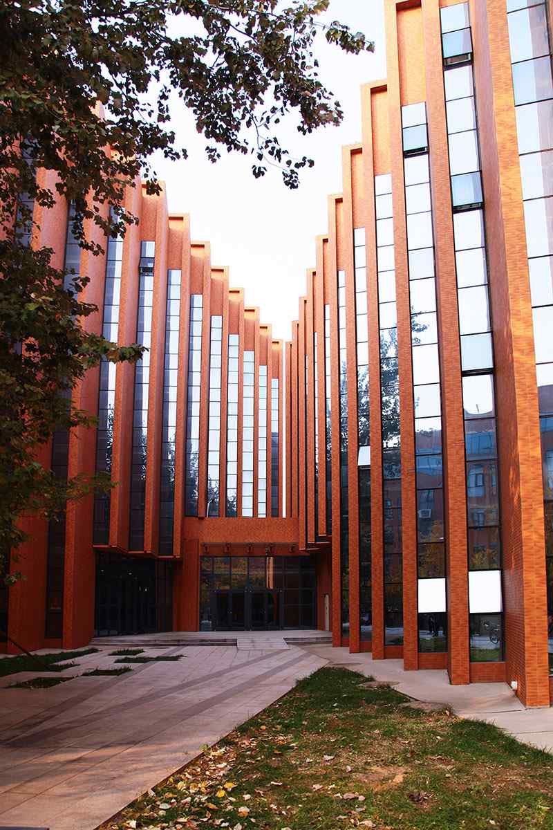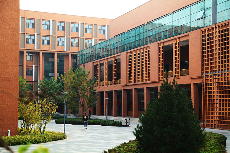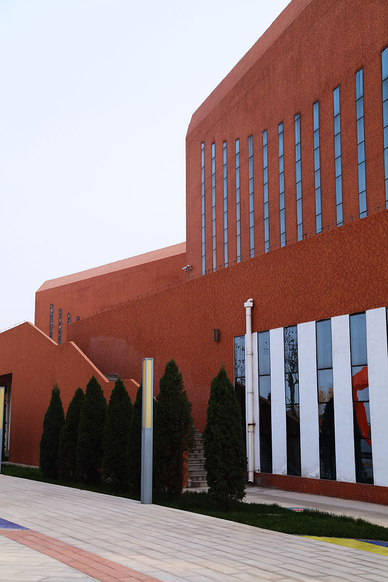 立面采用校園常用的紅磚手法,搭配鋼架及藍(lán)色玻璃幕,將傳統(tǒng)與現(xiàn)代相互結(jié)合,在給學(xué)生帶來(lái)濃厚傳統(tǒng)底蘊(yùn)的同時(shí)又不失現(xiàn)代創(chuàng)新的文化氣息。