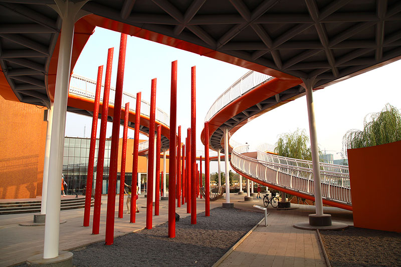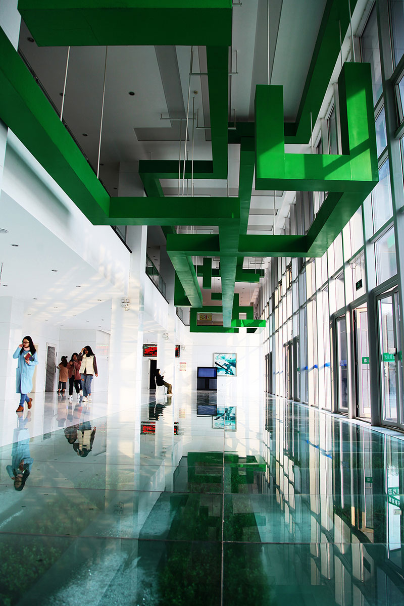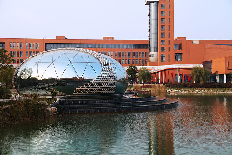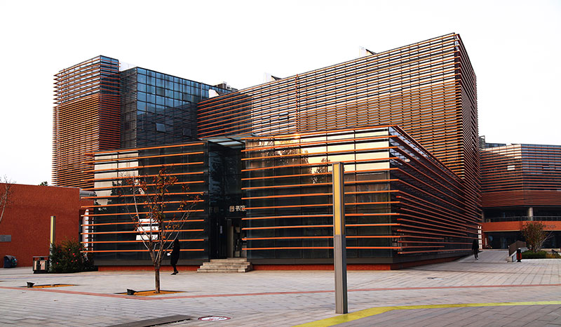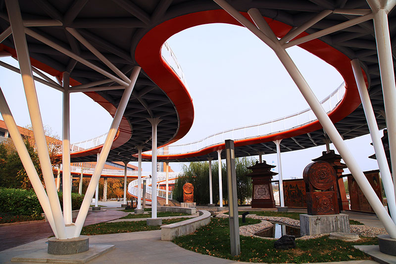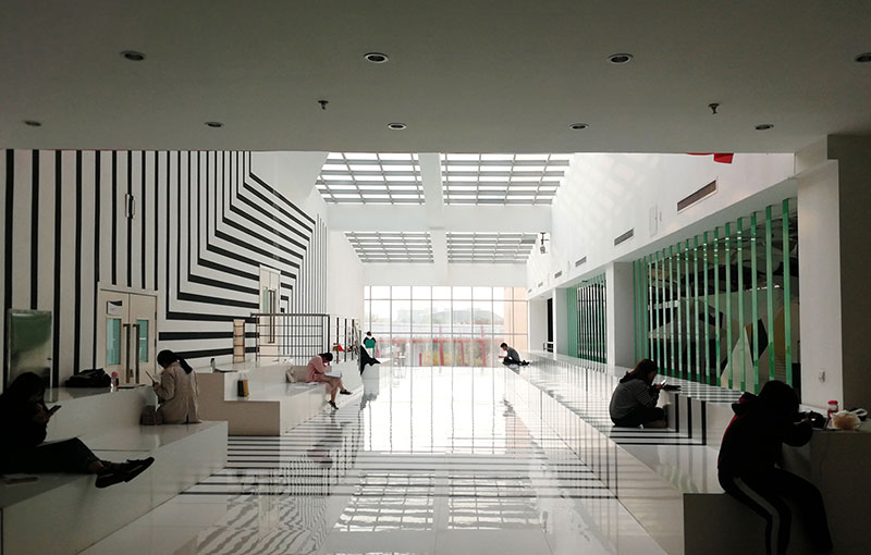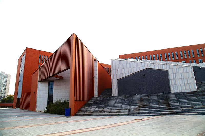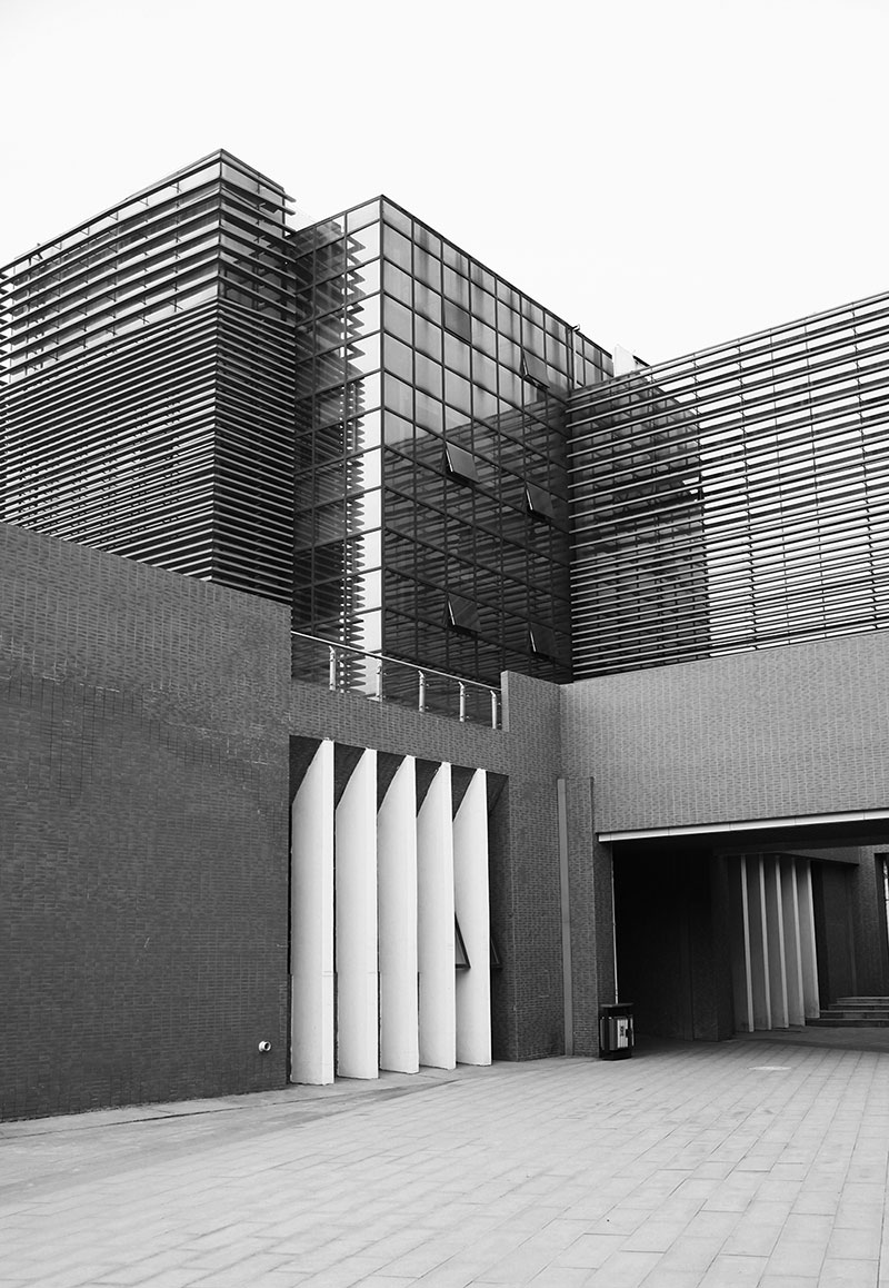 從整體規(guī)劃布局上看,校園內(nèi)各樓排布張弛有度,建筑與景觀(guān)相互結(jié)合,中央大湖與景觀(guān)廊架搭配蜿蜒蜷曲的步道,平靜中孕育詩(shī)意,給一所沉穩(wěn)的文化建筑帶來(lái)靈動(dòng)的韻律之美。