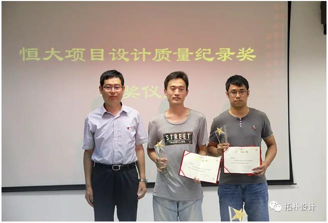 2018年7月31日,河北拓樸建筑有限公司舉行了恒大優(yōu)秀團隊表彰會,對恒大優(yōu)秀施工圖設(shè)計團隊進行表彰,對恒大翡翠御庭1#、3#樓的主設(shè)人員進行月度獎勵。