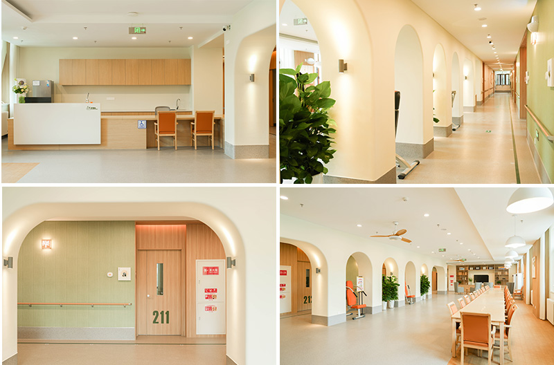在適老化空間,我們結(jié)合老年人行為、心理等特性,認(rèn)為在康氧環(huán)境中設(shè)置無(wú)障礙設(shè)施尤為重要,不僅僅體現(xiàn)于無(wú)障礙通道或電梯,還包括視線監(jiān)視與近便的服務(wù)動(dòng)線設(shè)計(jì)。