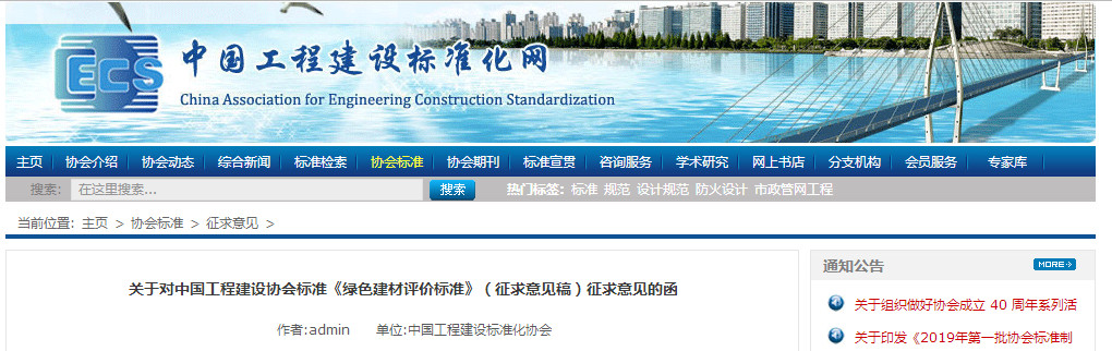 關(guān)于對(duì)中國工程建設(shè)協(xié)會(huì)標(biāo)準(zhǔn)《綠色建材評(píng)價(jià)標(biāo)準(zhǔn)》(征求意見稿)征求意見的函